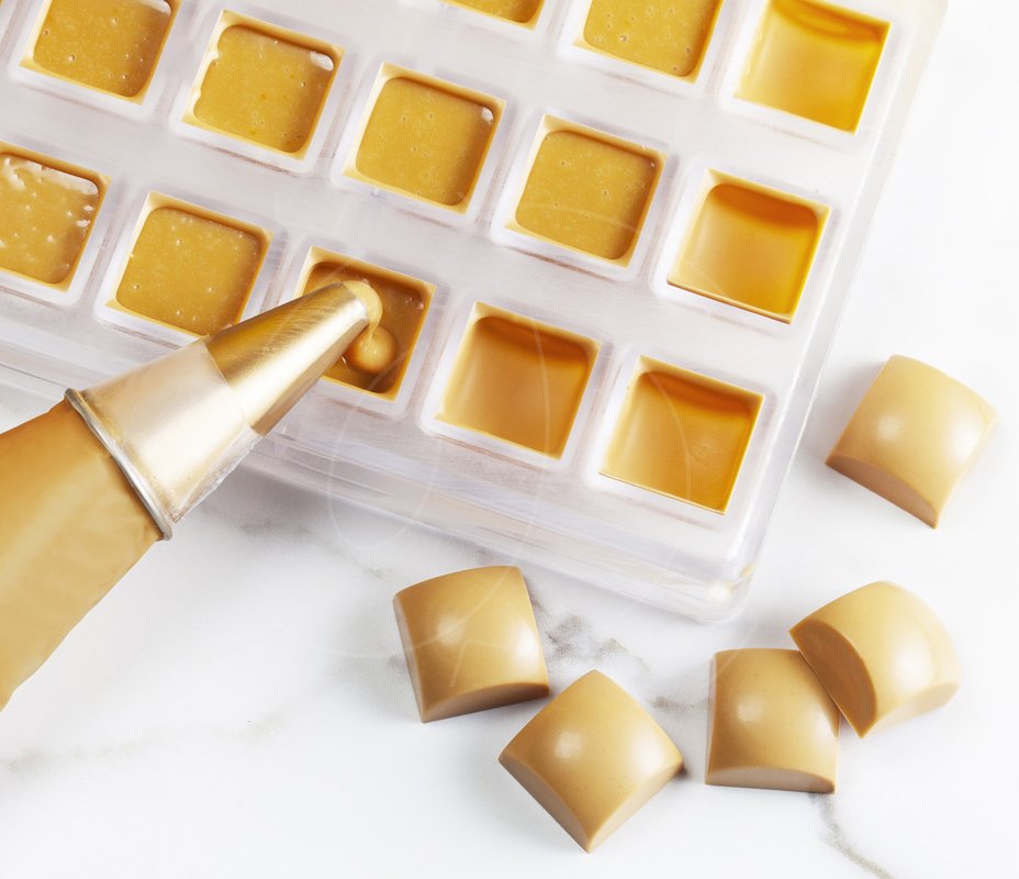 Теплый карамельный цвет янтаря с золотом привлекает внимание и предлагает массу возможностей для кондитерского творчества.