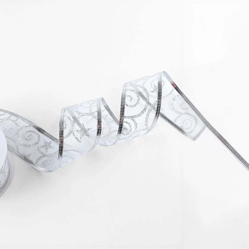 Доставка Лента для декора и упаковки Капроновая "Вензеля" Серебро 3,8 см из магазина в вашем городе:
