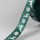 Лента для декора и упаковки Атласная Зелёная Олени 1,5 см
