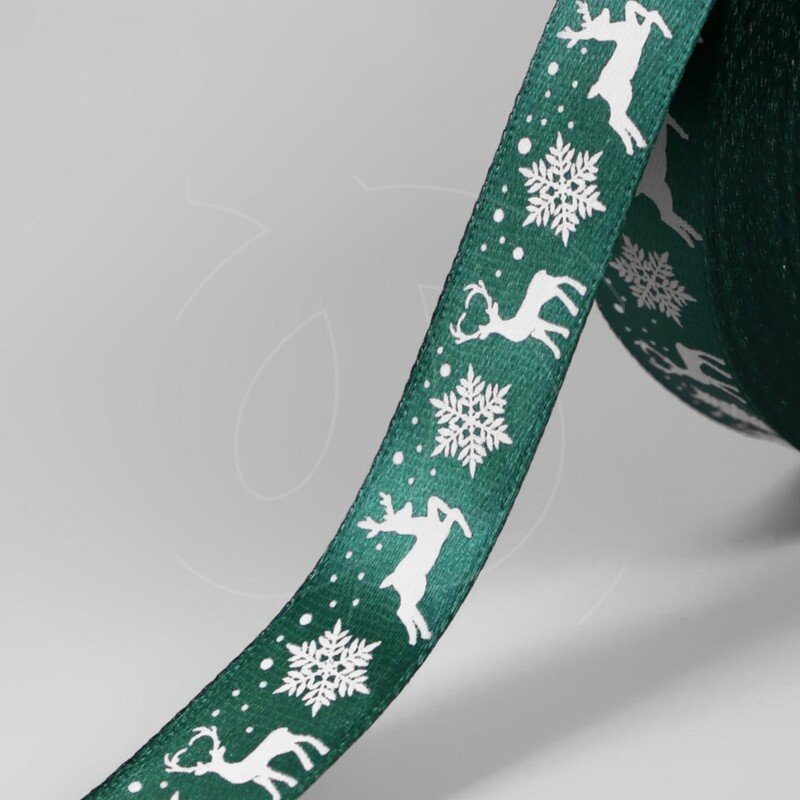 Доставка Лента для декора и упаковки Атласная Зелёная Олени 1,5 см из магазина в вашем городе: