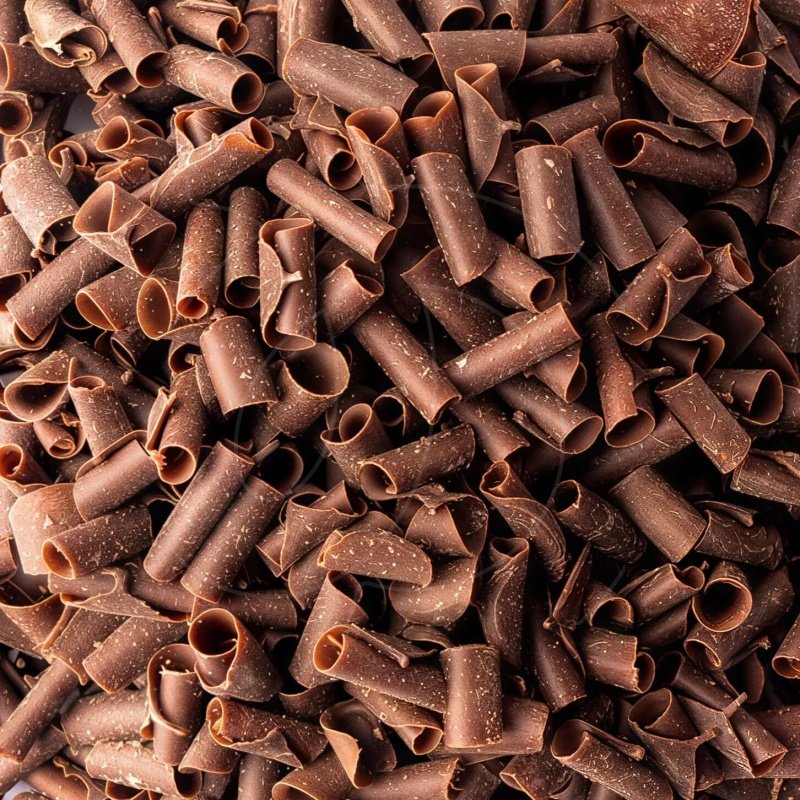 Шоколадная стружка сделана в виде хрупких завитков ручной работы из твердых блоков 100% Бельгийского шоколада Callebaut премиум класса.