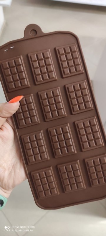Форма отличная! В ходу постоянно. Миниатюрные плиточки подходят практически в каждый десерт для украшения. Сама форма мягкая, положить ее на доску не составляет труда. Поскольку толщина у плиточек небольшая, то застывает шоколад очень быстро. Украшаю им детские тортики, капкейки и даже макарон ))) Надо взять еще 1, а то 1 форма маловата.