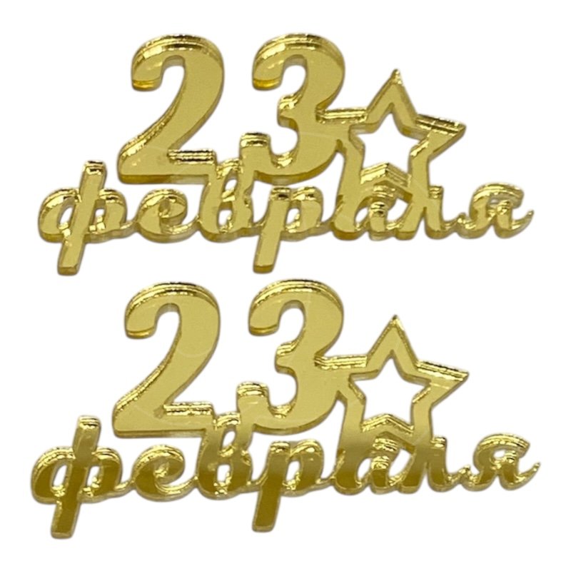 Доставка Набор топперов декоративных акриловых "23 февраля" Золото 6х3 см 2 шт из магазина в вашем городе: