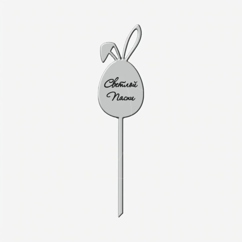 Доставка Топпер декоративный акриловый "Яйцо пасхальное с ушками" Серебро 3х6 см из магазина в вашем городе: