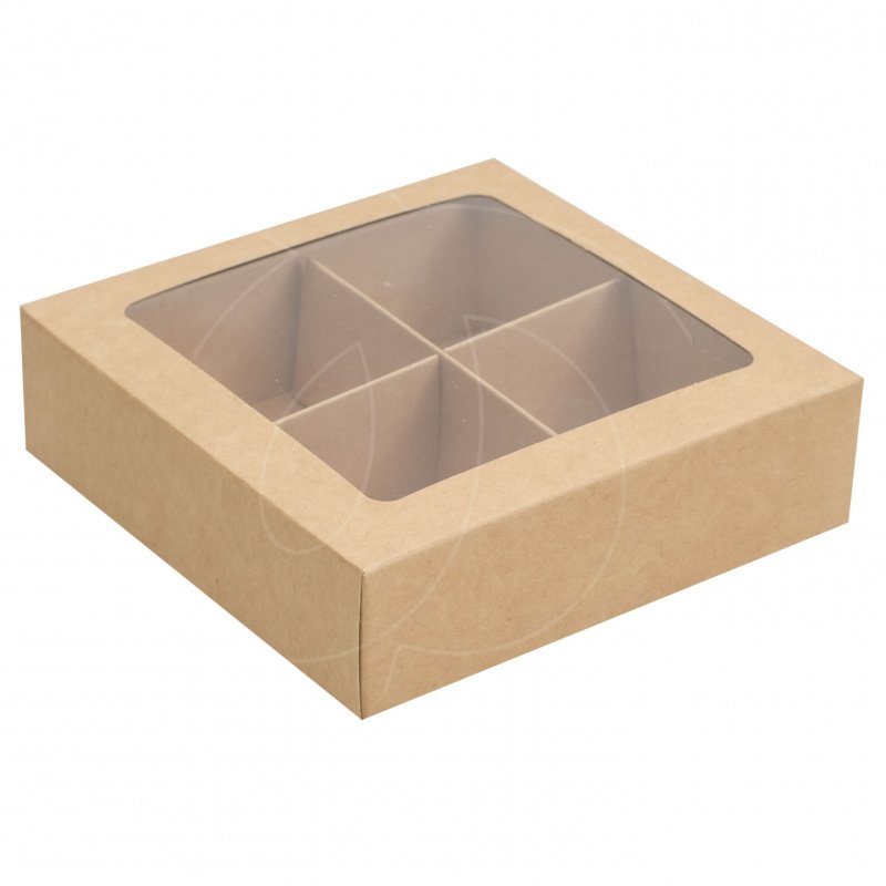 Доставка Коробка на 4 конфеты с окном крафт 12,6х12,6х3,5 см из магазина в вашем городе: